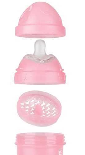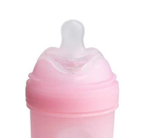 La tetina cierra las comisuras de la boca de su bebé, evitando que trague aire, y la válvula asegura que no haya vacío en el biberón.