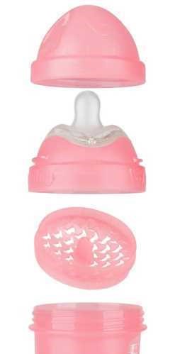 La tetina cierra las comisuras de la boca de su bebé, evitando que trague aire, y la válvula asegura que no haya vacío en el biberón.