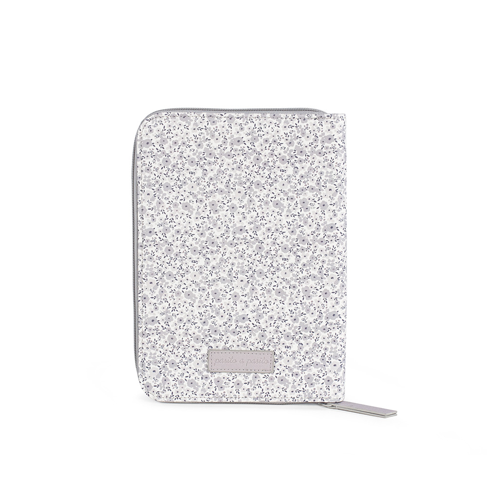 Libro de nacimiento Flower Mellow en polipiel impresa con flores gris. Portadocumentos con bolsillos y práctico cierre de cremallera para guardar el libro de Nacimiento y todos los documentos de tu bebé. Se puede lavar a mano o a máquina a 30º. Los materiales utilizados están libres de colorantes azoicos, ftalatos y sustancias nocivas para la salud. Medidas: 27X19X2 cm. Bolsas de maternidad Pasito a pasito.