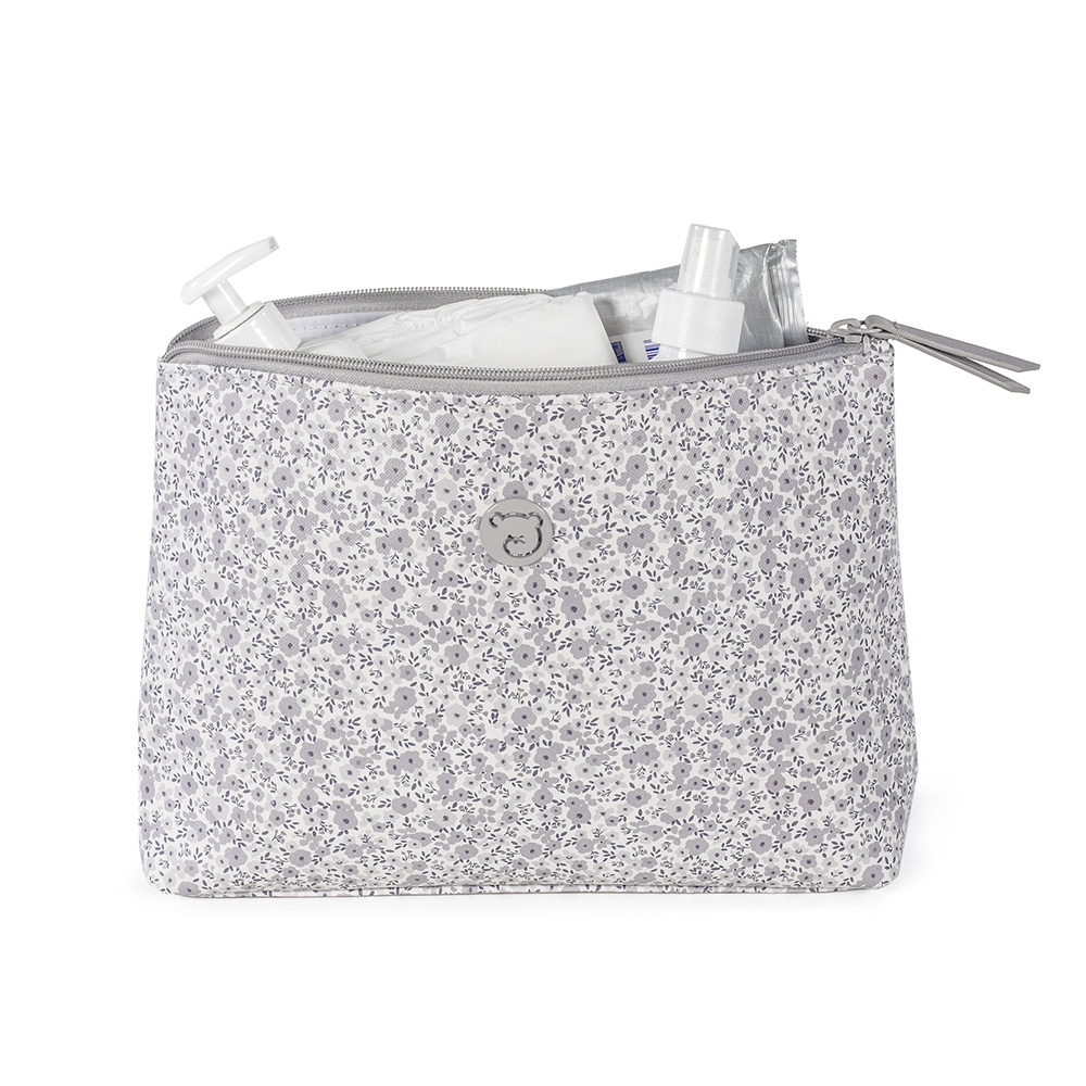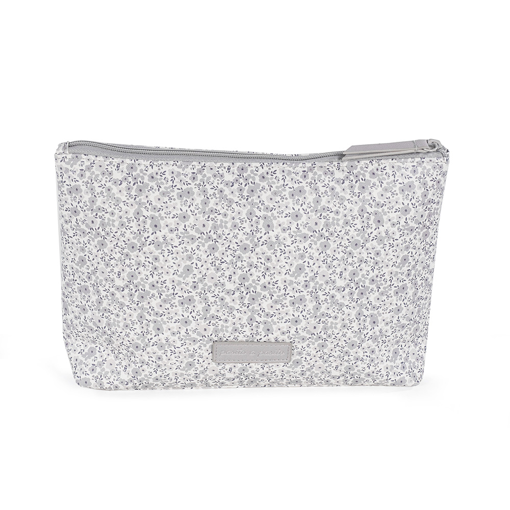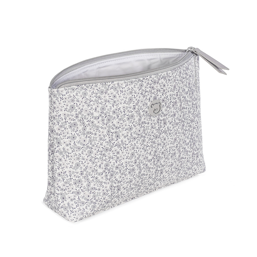 Neceser Flower Mellow en polipiel impresa con flores gris. Pequeño neceser muy práctico para llevar todos los productos de aseo de nuestros bebés. Se puede lavar a mano o a máquina a 30º. Los materiales utilizados están libres de colorantes azoicos, ftalatos y sustancias nocivas para la salud. Medidas 27X19X7 cm. Bolsas de maternidad Pasito a pasito.
