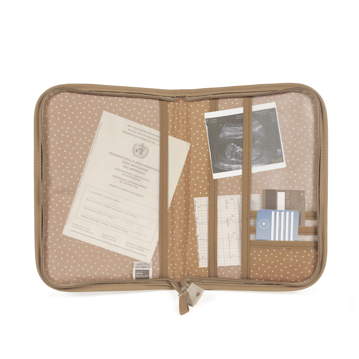 El libro de nacimiento Poppy Canela de corazones es una funcional carpeta portadocumentos de diseño a juego con la bolsa de maternidad. Un complemento indispensable para llevar contigo a todas partes que te ayudará a tener ordenada toda la documentación y papeles médicos de tu bebé (vacunas, recetas, partida de nacimiento). Esta funda portadocumentos está elaborada en tela resistente, cuenta con múltiples bolsillos distribuidos en ambos lado para organizar mejor todo. También tiene un práctico cierre de cremallera para guardar seguro el libro de Nacimiento y todos los documentos de tu bebé. Gran calidad y mucho estilo. Fabricado en un material resistente y de fácil limpieza a mano o a máquina a 30 °C. Walking Mum protege a tu bebé utilizando los mejores tejidos, libres de colorantes azoicos y sustancias nocivas para la salud. Nuestra colección Walking Mum guarda toda la calidad de la marca Pasito a Pasito pero con un particular sello de estilo urbano y moderno que no pasa desapercibido, para vestir diferente los paseos con tu bebé. Los accesorios de esta línea son más sport y prácticos, especialmente pensadas en mamás y papás modernos que aprecian los diseños más actuales y en tendencia sin dejar de lado la calidad y la funcionalidad de los complementos que hacen más cómodos todos los paseos con sus bebés.