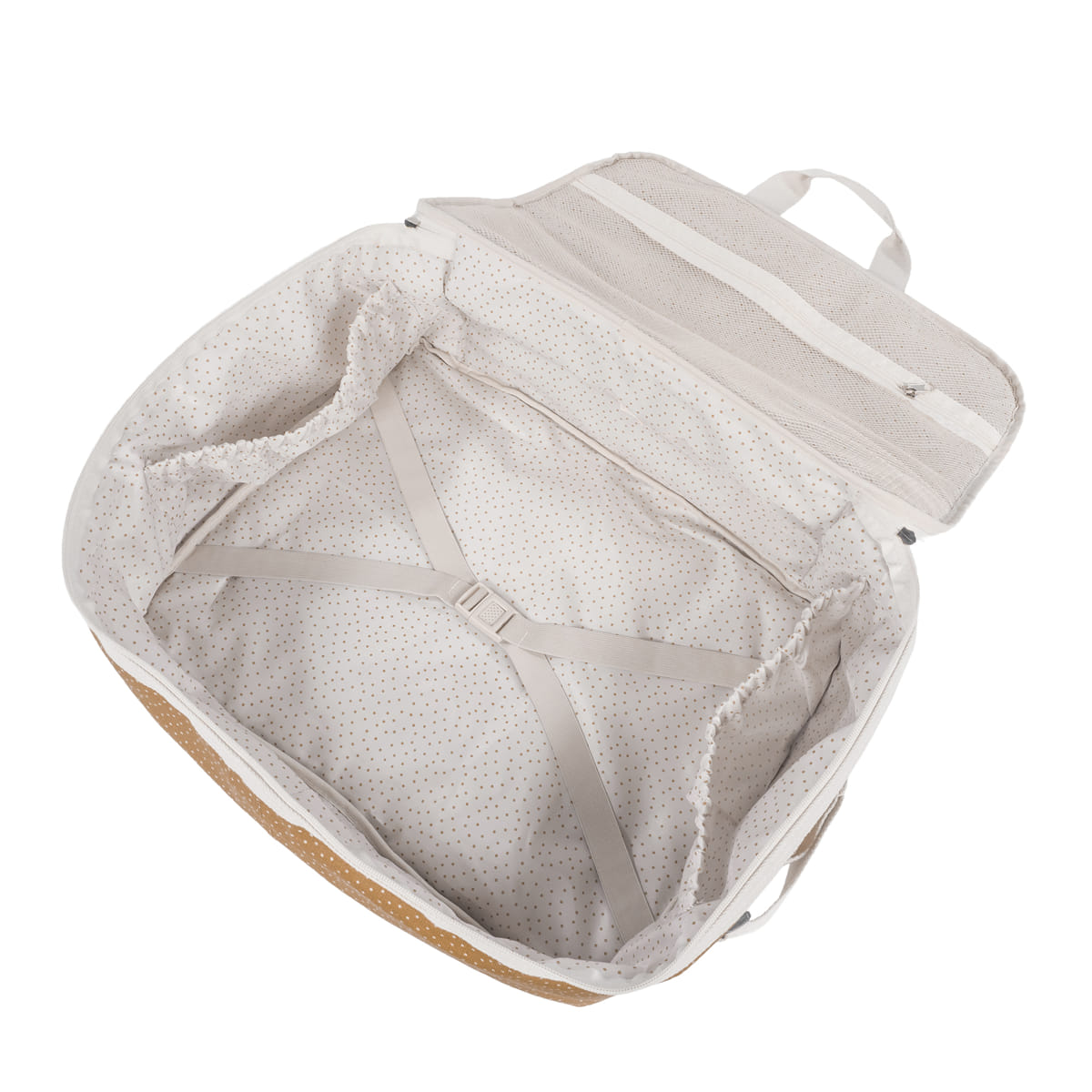 La maleta de bebé Topito Poppy Canela es un bolso especialmente diseñado para el momento más importante del embarazo, que es la llegada de tu bebé, momento en el que hay un montón de cosas que preparar. Por esto necesitas un espacio cómodo para transportar todo lo necesario para ti, el padre y el niño. Esta maleta de bebé es el modelo perfecto para cubrir todo lo que no puede faltar en este día tan especial. Es cómoda, ligera y manejable con dimensiones rectangulares y apertura práctica para tener todas tus necesidades cubiertas. Cuenta con cierre seguro de cremallera en ambas direcciones que facilitan su apertura, incluye una correa larga para llevar colgada en el hombro y asas cortas de mano. Además en el compartimiento interior tiene un forro a juego con gomas para contener la ropa y mantener todo en su lugar. Gran calidad y mucho estilo. Fabricado en un material resistente y de fácil limpieza a mano o a máquina a 30 °C. Walking Mum protege a tu bebé utilizando los mejores tejidos, libres de colorantes azoicos y sustancias nocivas para la salud. Nuestra colección Walking Mum guarda toda la calidad de la marca Pasito a Pasito pero con un particular sello de estilo urbano y moderno que no pasa desapercibido, para vestir diferente los paseos con tu bebé. Las bolsas de maternidad de esta línea son más sport y prácticas, especialmente pensadas en mamás y papás modernos que aprecian los diseños más actuales y en tendencia sin dejar de lado la calidad y la funcionalidad de los accesorios que complementan y hacen más cómodos todos los paseos con sus bebés.
