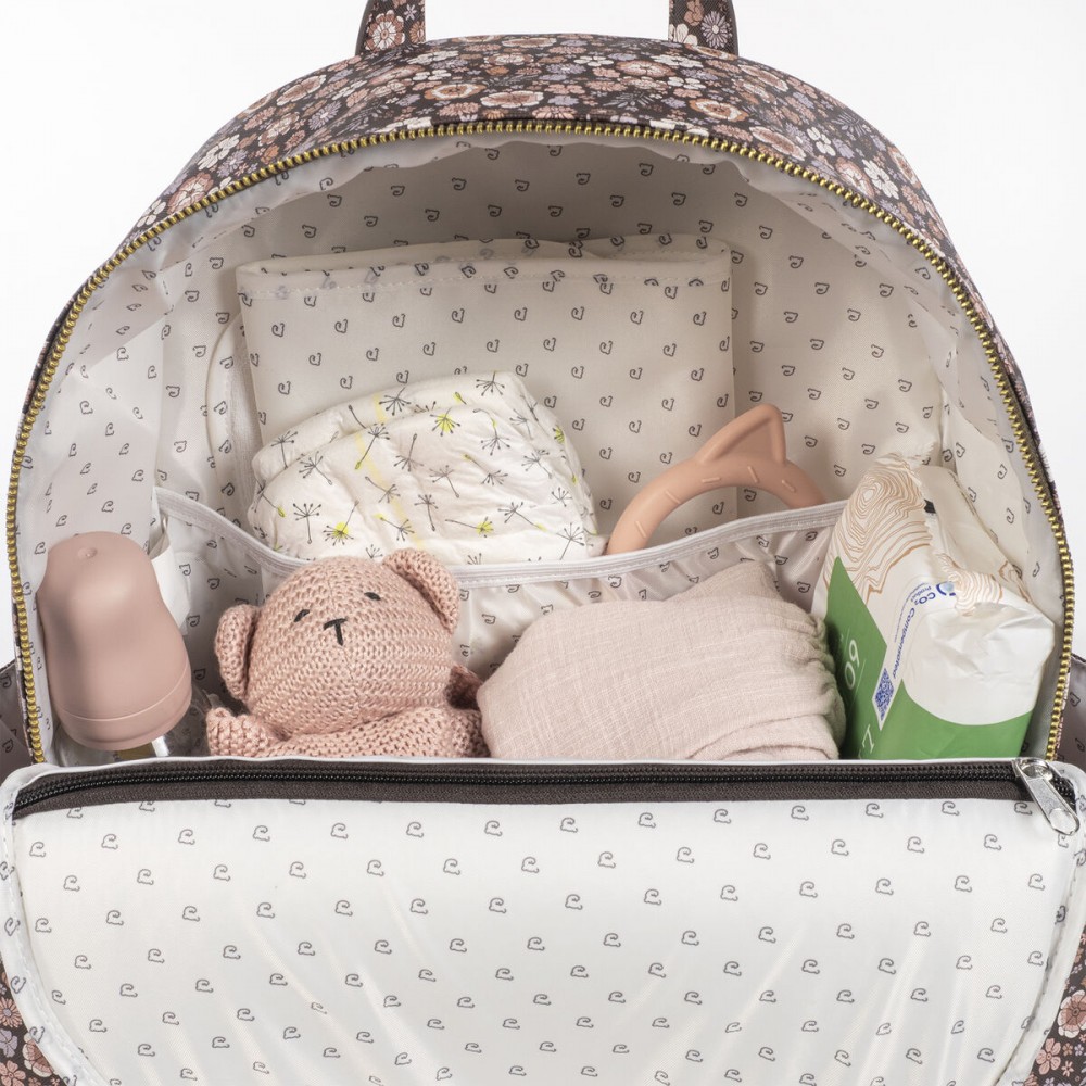 Cuenta con varios bolsillos interiores y exteriores para tener todo a mano y en orden, incluyendo un bolsillo interior térmico para biberones, un bolsillo plastificado para la ropa mojada y un compartimento para portátil o tablet.