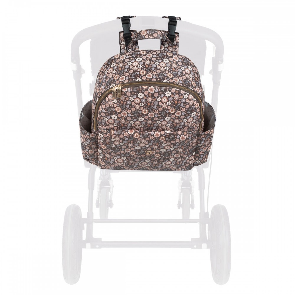 La mochila también tiene dos asas grandes ajustables para que puedas usarla colgada a la espalda y otras dos asas pequeñas para que puedas usarla colgada del carrito del bebé. Incorpora una cinta trasera para sujetarla a la maleta trolley.