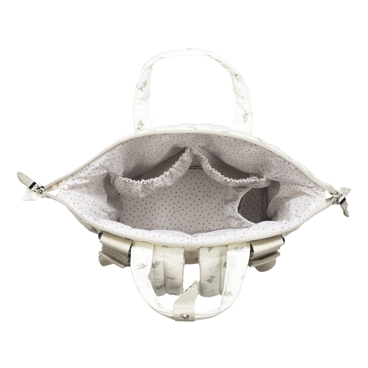 Una bolsa canastilla y mochila al mismo tiempo, ideal para llevar tus cosas y las de tu bebé, con mucho estilo, a todos sus paseos.