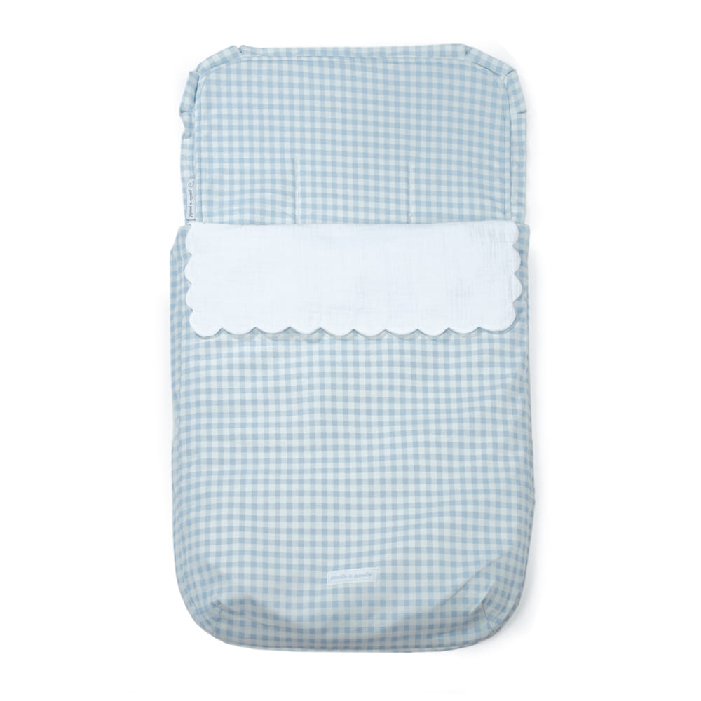 Saco para cuco Together en punto estampado en cuadro vichy azul de Pasito a Pasito. Saco 3 en 1 ideal para cubrir el cuco, portabebé y silla de paseo. Una vez desenfundada la base se convierte en colchoneta para la silla de paseo ligera. Trasera con material anti-sudoración que evita la sudoración excesiva del bebe y protege la silla haciendo el paseo más confortable. Relleno extraíble. Dispone de varias aperturas (ojales) y ajustes para adaptarla a la mayoría de los cucos, portabebés y sillas de paseo.Todas nuestras fundas están fabricadas conforme a las más exigentes normativas europeas. Los materiales utilizados son libres de colorantes azoicos y sustancias nocivas para la salud de tu bebé. De fácil limpieza, se recomienda lavar a máquina a 30º. Fundas para silla de paseo de Pasito a pasito.
