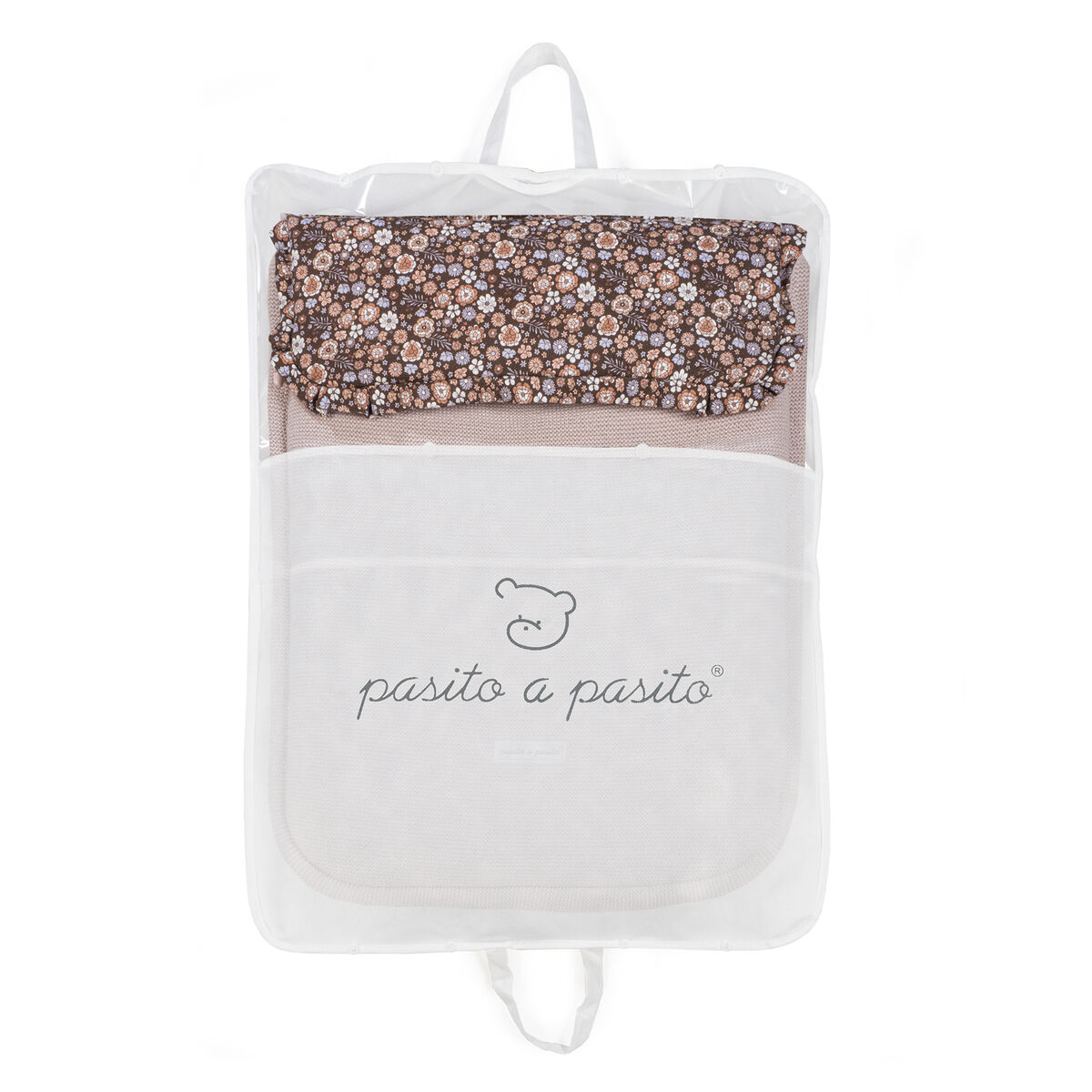 El saco cuco Blossom Petal de Pasito a Pasito es un saco de dormir para bebé elaborado en punto estampado de flores y tricot ideal para los dias frios de invierno. Es un accesorio básico 3 en 1 que sirve para utilizarlo en casa para cubrir el portabebé Grupo 0 y también le va muy bien como cubre capazo. Es totalmente universal porque dispone de varias aperturas (ojales) y ajustes necesarios para adaptarla a la mayoría de los cucos, portabebés y sillas de paseo en su interior. Un complemento muy útil y versátil en las cosas de tu bebé. Una vez desenfundada la base se convierte en colchoneta ligera para la silla de paseo. Prepara con mucho amor el nido rosa de tu niña/niño y decora sus sueños con un toque diferente en donde quiera que lo recuestes. Una manta acolchada y esponjosa que permite disfrutar de un descanso más agradable con la forma acogedora que tiene de nido. Es un diseño bonito, simple y cómodo que crea un nido para tu bebé manteniéndolo arropado y protegido. El saco se adapta sin problemas a cualquier coche para darle la comodidad que necesita. Acabados de calidad. Todas nuestras fundas están fabricadas conforme a las más exigentes normativas europeas, con materiales de gran calidad, libres de colorantes azoicos, ftalatos y sustancias nocivas para la salud. Tela de fácil limpieza, se recomienda lavar a máquina a 30º. Los productos para bebé de Pasito a Pasito cuentan con un diseño muy diferente a todas las demás. Sus colecciones se caracterizan por el trabajo al detallada, pensadas siempre desde un punto de vista práctico. Utilizan materiales de primera calidad para remarcar la elegancia y la armonía en cada una de sus piezas. Nuestros modelos son exclusivos y de estilo inconfundible, pensados en las madres actuales que gozan de buen gusto y que aprecian los detalles tanto como nosotros.