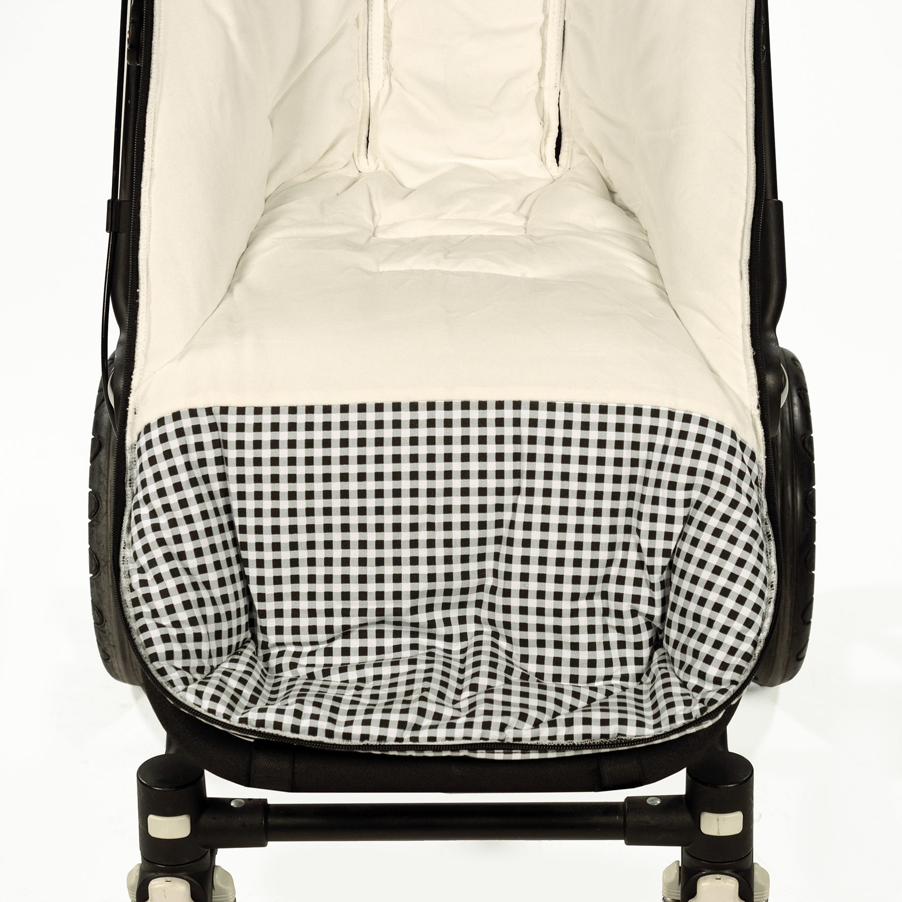 Cuenta con una base plastificada en el reposapiés que facilita la limpieza posterior a su uso. Es un diseño bonito, simple y cómodo que crea un nido para tu bebé manteniéndolo arropado y protegido en días de frio.