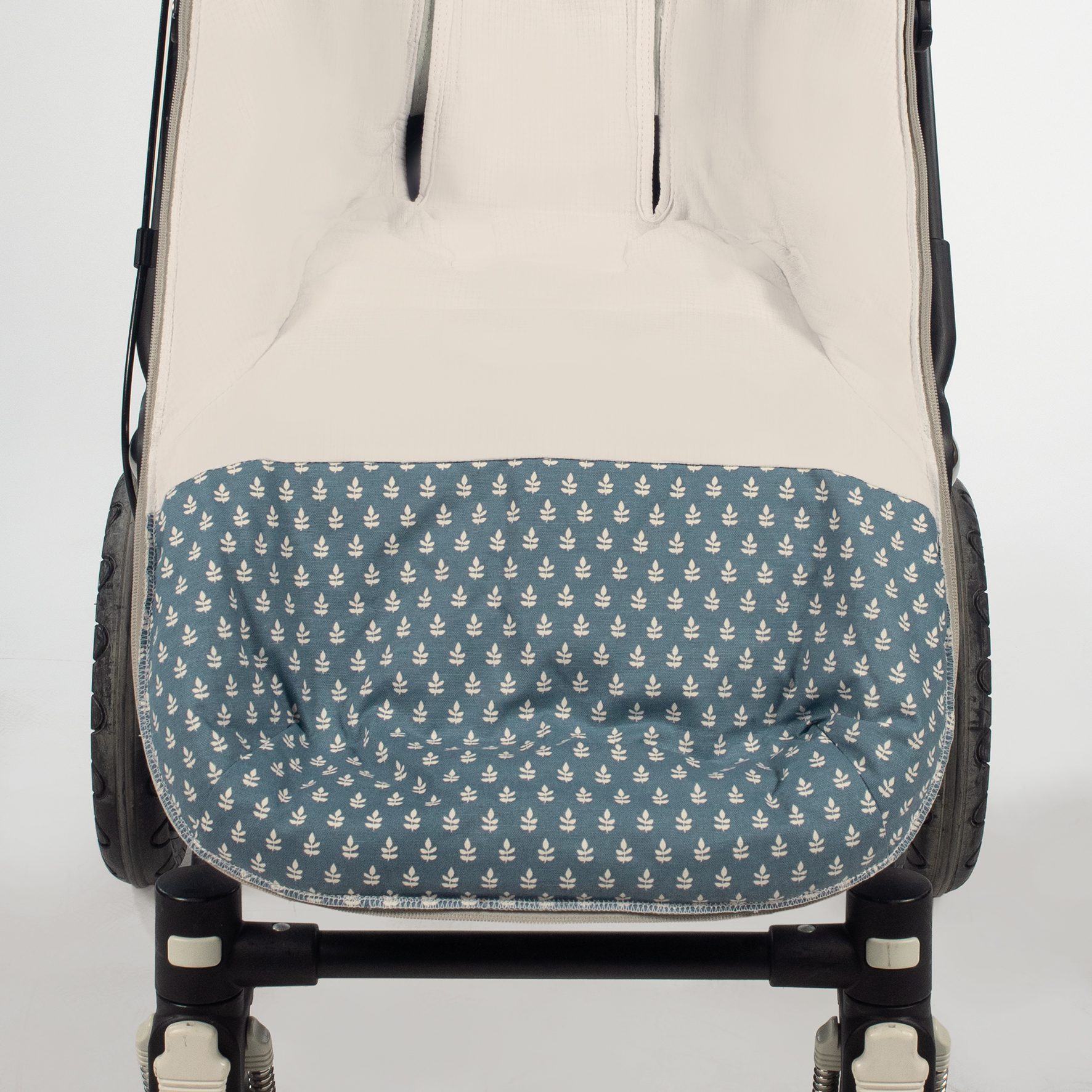 Cuenta con una base plastificada en el reposapiés que facilita la limpieza posterior a su uso. Es un diseño bonito, simple y cómodo que crea un nido para tu bebé manteniéndolo arropado y protegido en días de frio.
