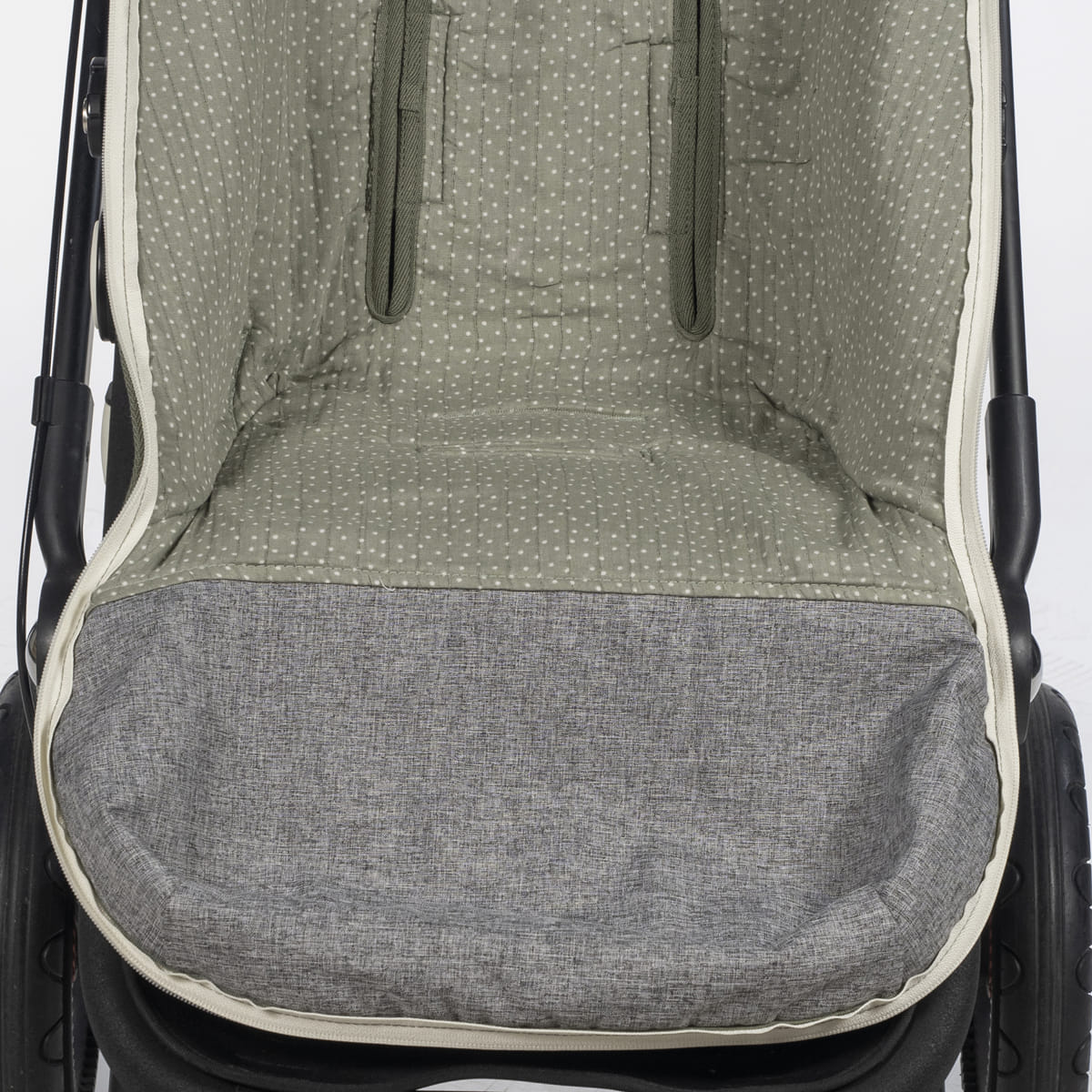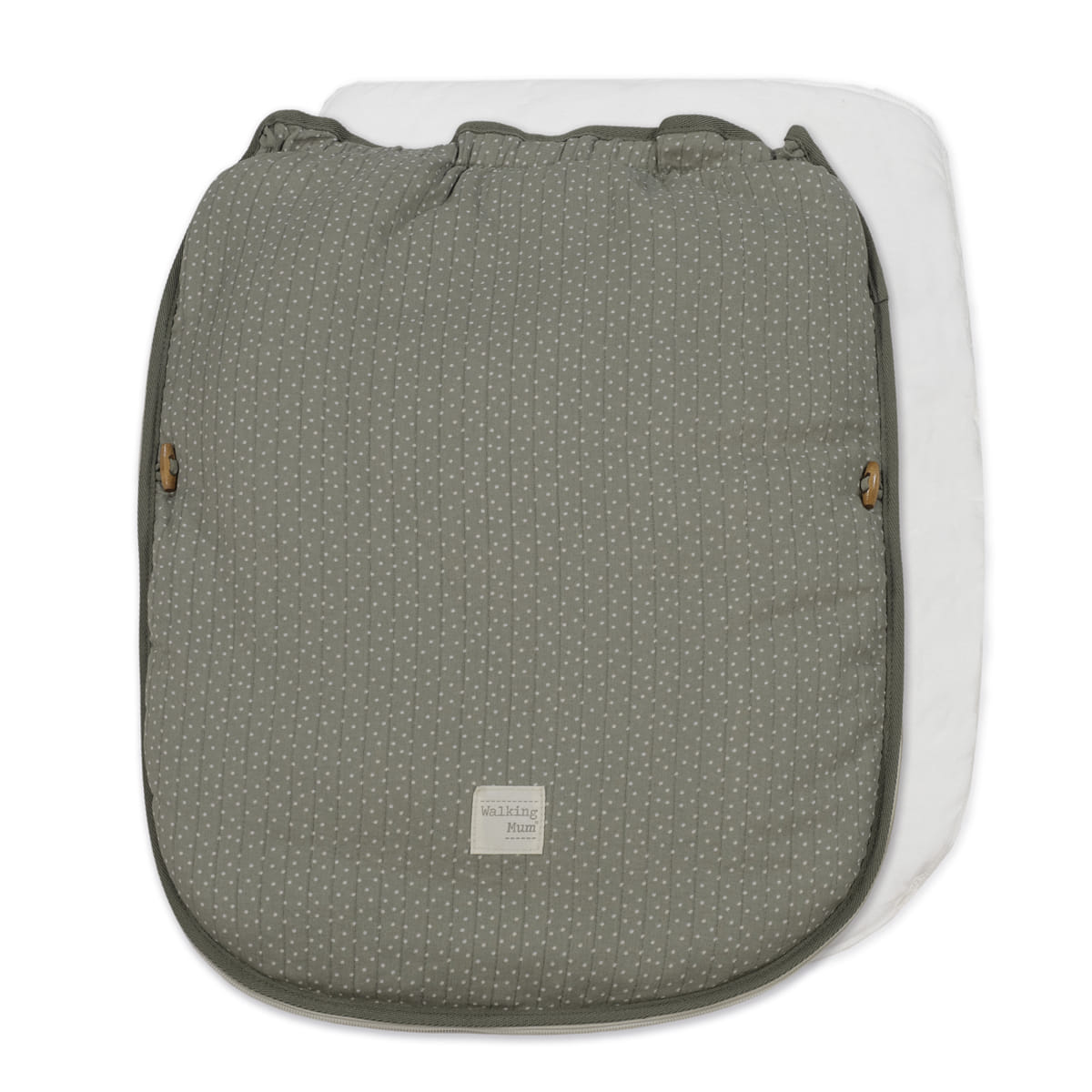 La funda de silla para bebé Poppy Musgo de topitos está fabricado con un tejido de 100% algodón reciclado. Es la funda ideal para cubrir la base de la silla de paseo y viene provista de saco para arropar a tu bebé. Con este saco tu bebé estará cómodo durante los meses de primavera y de otoño. Trasera con material anti-sudoración que evita la sudoración excesiva del bebe. Relleno extraíble. Su esquema dispone de varias aperturas (ojales) y ajustes con los que se te hará más fácil adaptarla a la mayoría de los cochecitos, convirtiendo el paseo de tu bebé seguro y confortable. Está elaborado con un material resistene y cálido. Cuenta con una base de poliéster en el reposapiés que facilita la limpieza posterior a su uso. Es un diseño bonito, simple y cómodo que crea un nido para tu bebé manteniéndolo arropado y protegido. El saco se adapta sin problemas a cualquier coche y le permite disfrutar de un descanso más agradable con la forma acogedora que tiene de nido.Gran calidad y mucho estilo. Fabricado en materiales resistentes y de fácil limpieza a mano o a máquina a 30 °C. Walking Mum protege a tu bebé utilizando los mejores tejidos, libres de colorantes azoicos y sustancias nocivas para la salud. Nuestra colección Walking Mum guarda toda la calidad de la marca Pasito a Pasito pero con un particular sello de estilo urbano y moderno que no pasa desapercibido, para vestir diferente los paseos con tu bebé. Los accesorios de esta línea son más sport y prácticas, especialmente pensadas en mamás y papás modernos que aprecian los diseños más actuales y en tendencia sin dejar de lado la calidad y la funcionalidad de complemetos que hacen más cómodos todos los paseos con sus bebés.