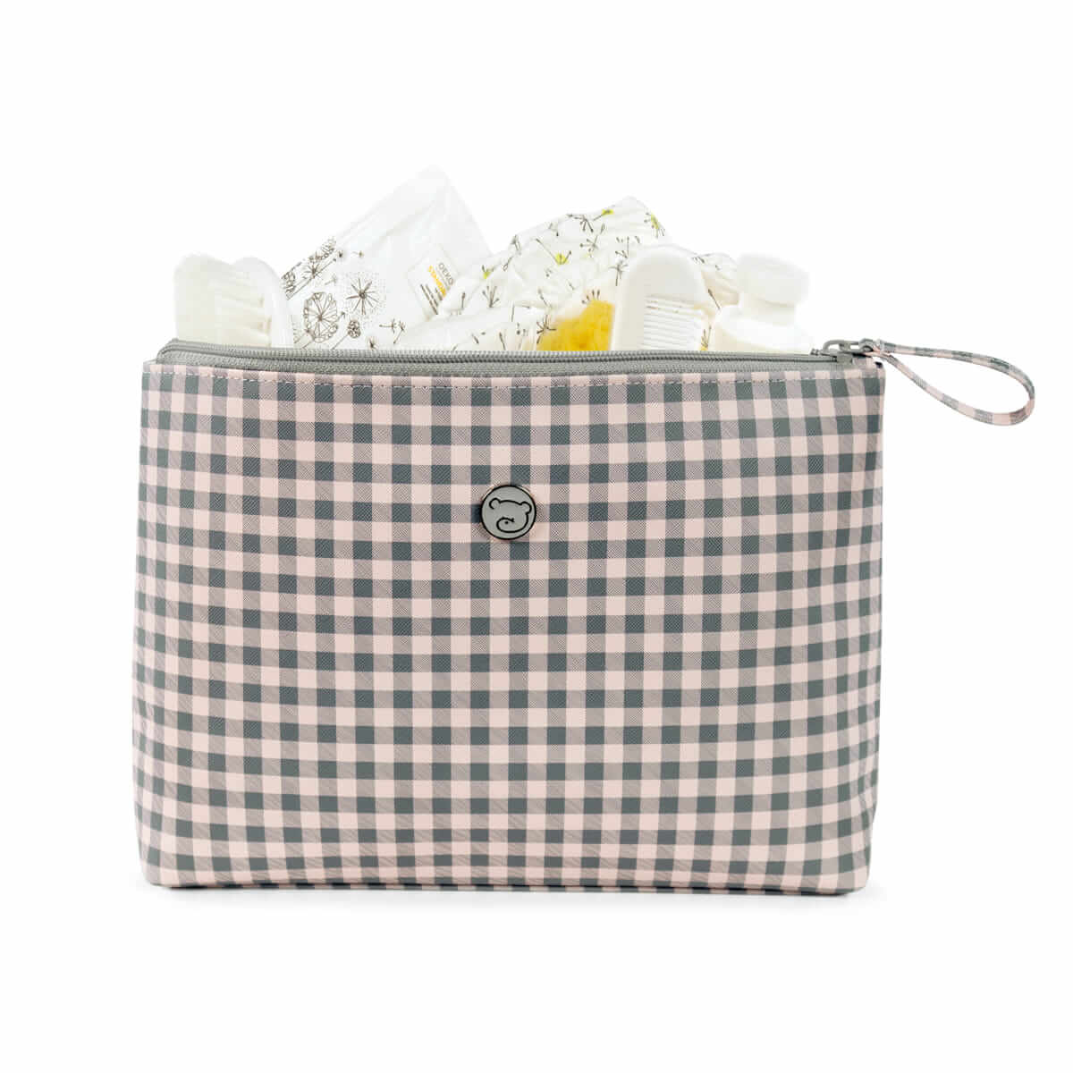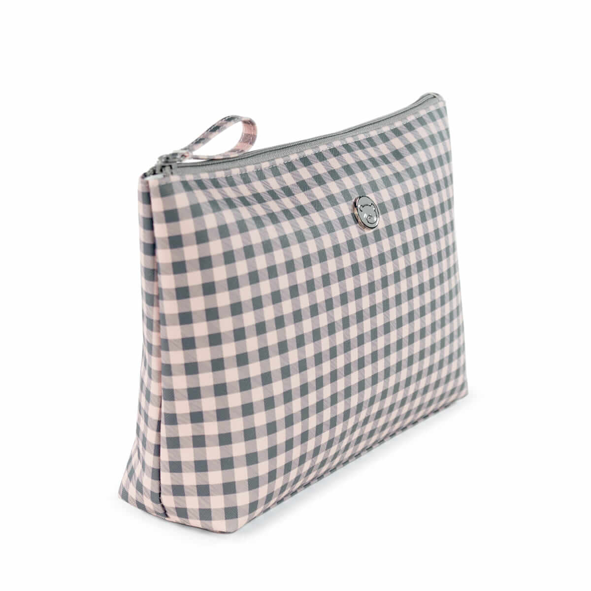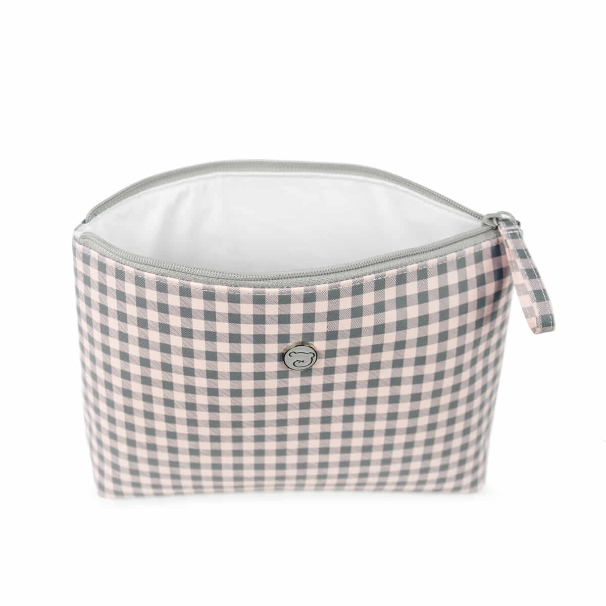 El neceser de bebé Together de Pasito a pasito es un bolso pequeño especialmente pensado para llevar todos los productos de aseo de nuestro bebé al salir de casa. Es un modelo único con mucho estilo para adecuarse a lo que necesitas. Está elaborado en resistente y suave polipiel impresa con cuadro vichy rosa y gris y com una forma para acomodar fácilmente en el bolso canastilla a un lado. Es un diseño bonito, simple y cómodo que ofrece un espacio pequeño pero preciso para llevar justo lo que necesitas para la higiene de tu bebé, peine, lociones y otros objetos que por ser tan pequeños a veces se pierden dentro del bolso canastilla. Cuenta con un cierre de cremallera de fácil apertura. Acabados de calidad. El bolso neceser cuenta con un forro interior de tela blanca para cuidar el material interno. Está fabricado con materiales de gran calidad, libres de colorantes azoicos, ftalatos y sustancias nocivas para la salud. Además se puede lavar a mano o a máquina a temperaturas de hasta 30º. Los productos para bebé de Pasito a Pasito cuentan con un diseño muy diferente a todas las demás. Sus colecciones se caracterizan por el trabajo al detallada, pensadas siempre desde un punto de vista práctico. Utilizan materiales de primera calidad para remarcar la elegancia y la armonía en cada una de sus piezas. Nuestros modelos son exclusivos y de estilo inconfundible, pensados en madres actuales que gozan de buen gusto y que aprecian los detalles tanto como nosotros.