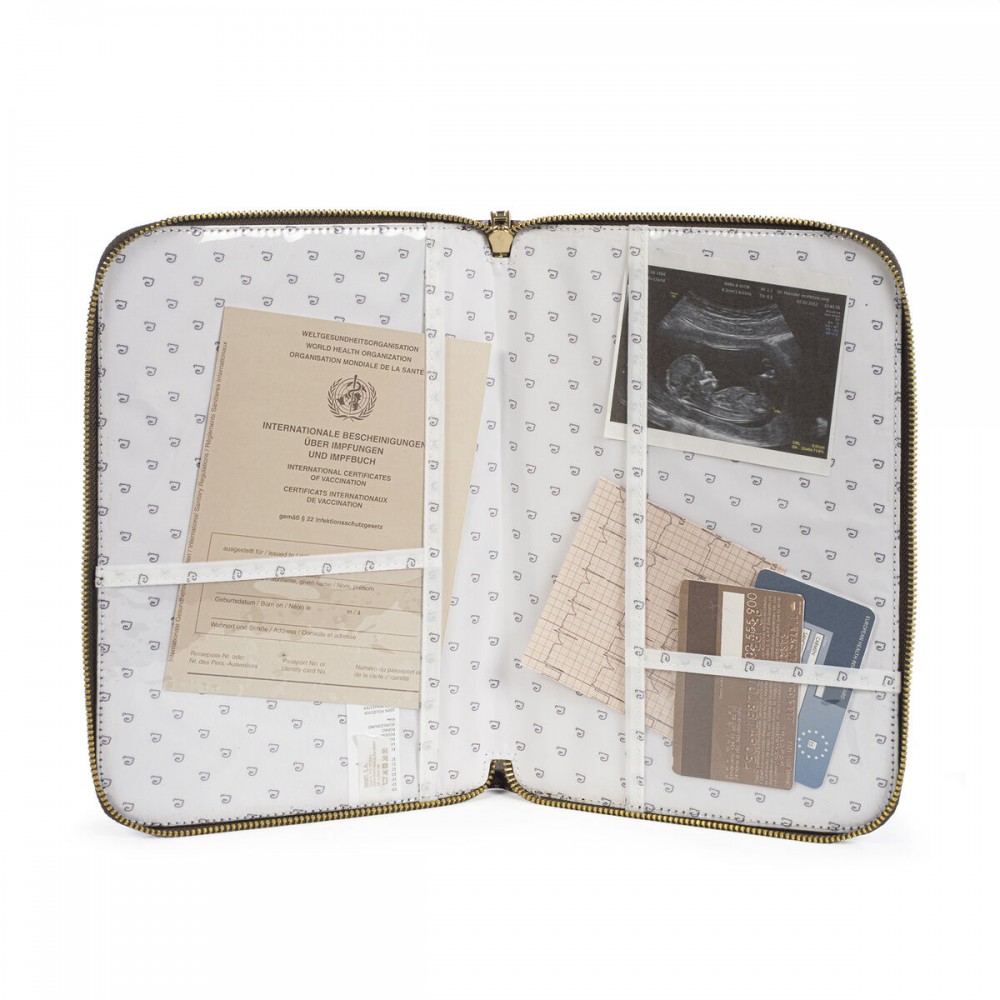 Cuenta con un práctico cierre de cremallera para así guardar seguro el libro de nacimiento y todos los documentos de tu bebé.