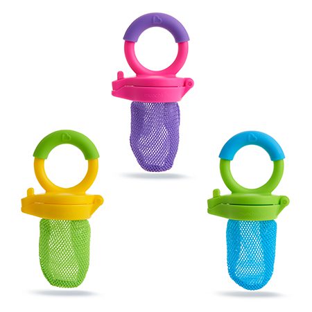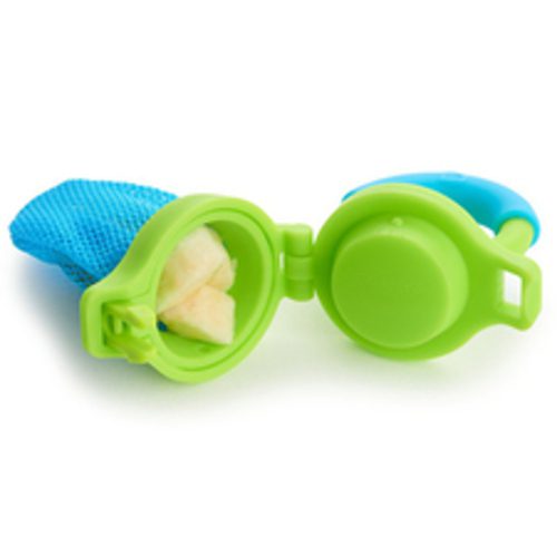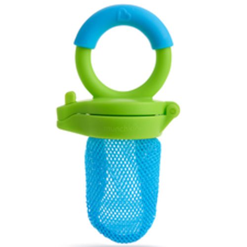 Quieres lo mejor para tu bebé, y eso quiere decir añadir fruta y verdura fresca y purés a la hora de las comidas. El alimentador Munchkin para alimentos frescos permite al bebé saborear alimentos que se pueden coger con la mano sin preocuparte por si se atraganta. Con su sencillo diseño de malla, este práctico alimentador y mordedor permite a los bebés chupar y masticar la comida de forma segura. No hay más que meter un trozo de fruta, verdura o incluso carne en la bolsa de malla y cerrarla. El bebé puede masticar, chupar y saborear alimentos enteros con todo su valor nutritivo, pero extrayendo tan solo trozos pequeños y digeribles, lo que reduce el riesgo de atragantamiento. Es también una gran alternativa a los mordedores. El alimentador Munchkin para alimentos frescos tiene una colorida asa de agarre fácil para que lo pueda sujetar el bebé, lo que lo convierte en el primer paso hacia la independencia a la hora de comer.