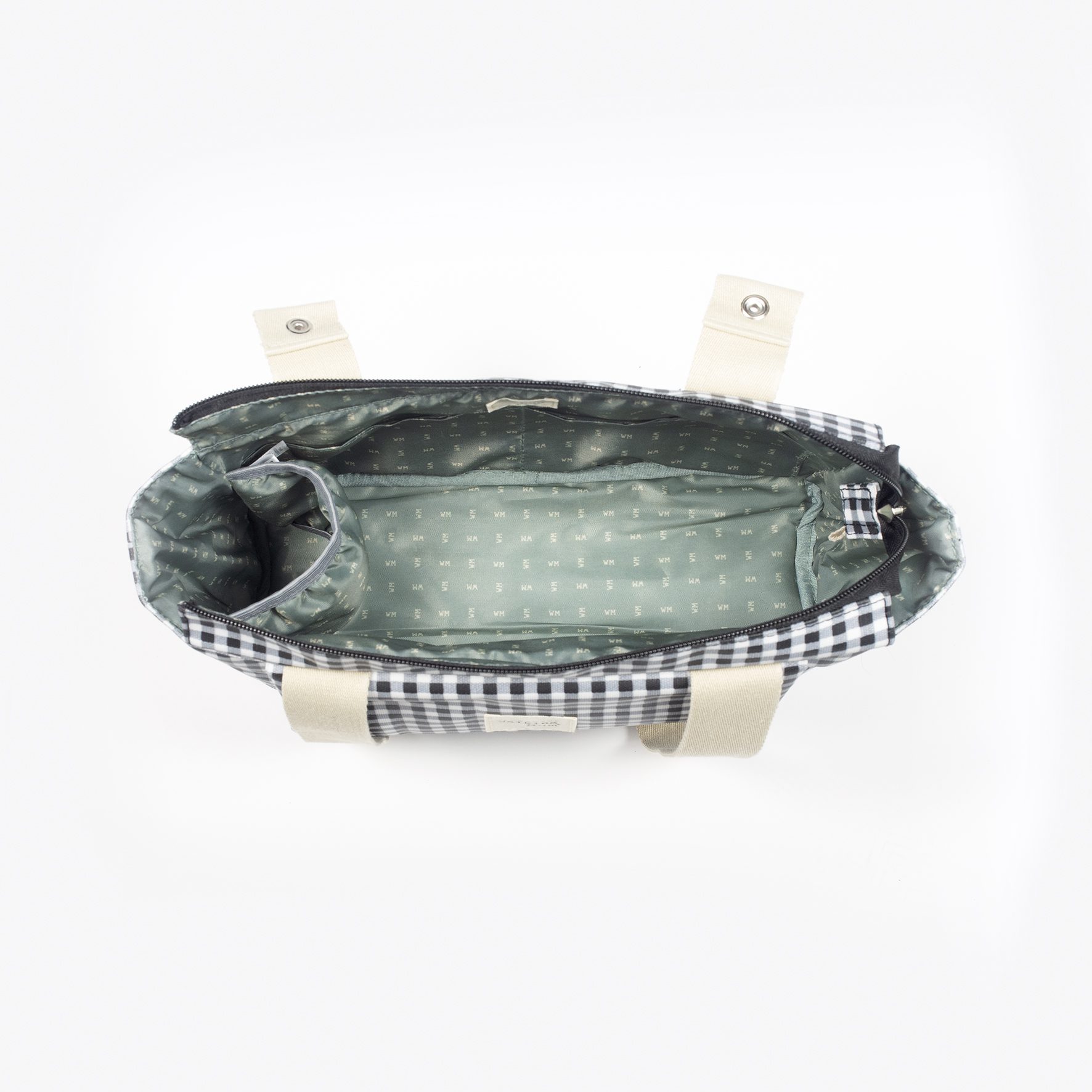 El bolso organizador I love Vichy negro para silla de paseo es un modelo muy ligero además de ser resistente y espacioso para que puedas llevar todo lo que podrías necesitar durante el paseo de tu bebé.