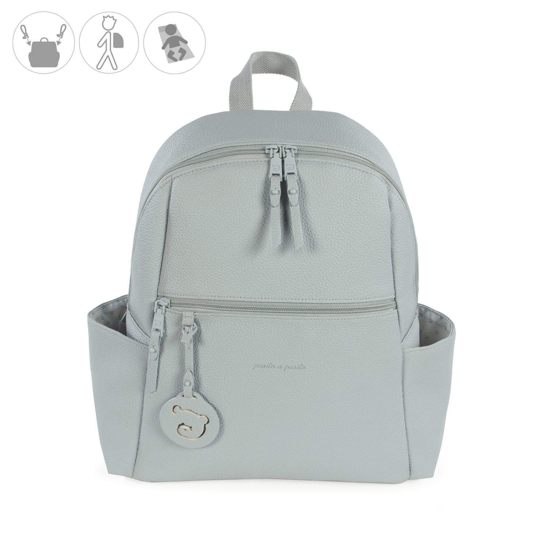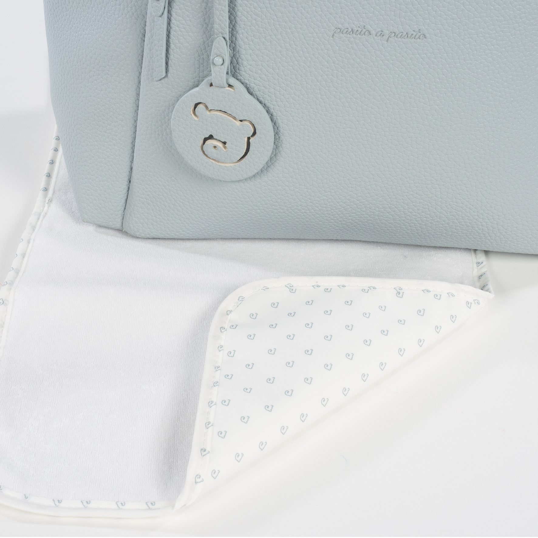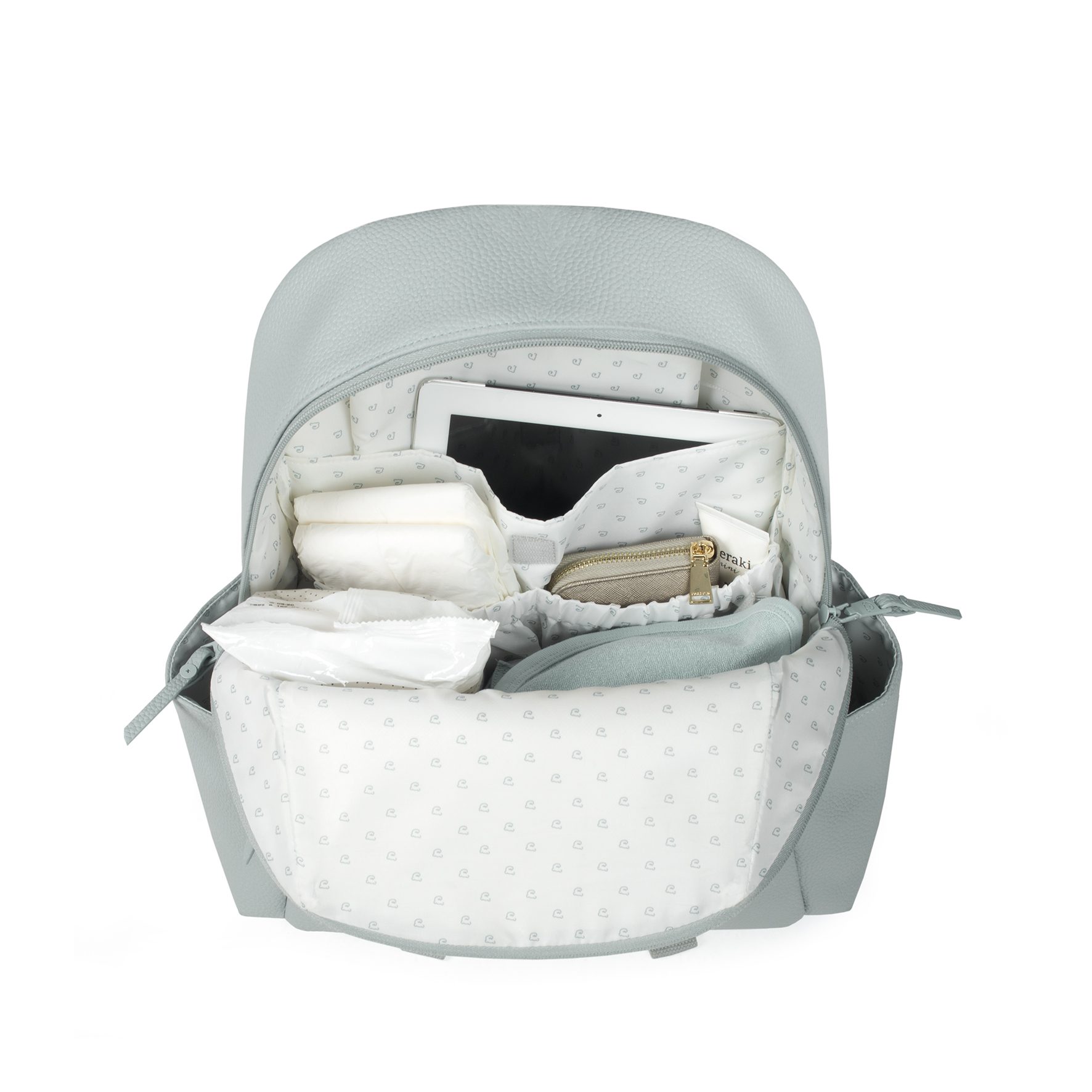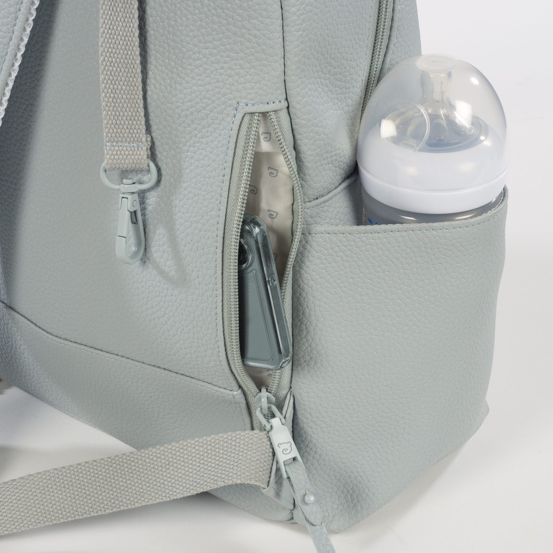 La mochila para carrito de bebé o silla de paseo Yummi es un modelo único, elaborado en resistente y delicada polipiel con tonalidad clara en color verde mint, para llevar todo lo que necesita tu bebé al salir de casa.