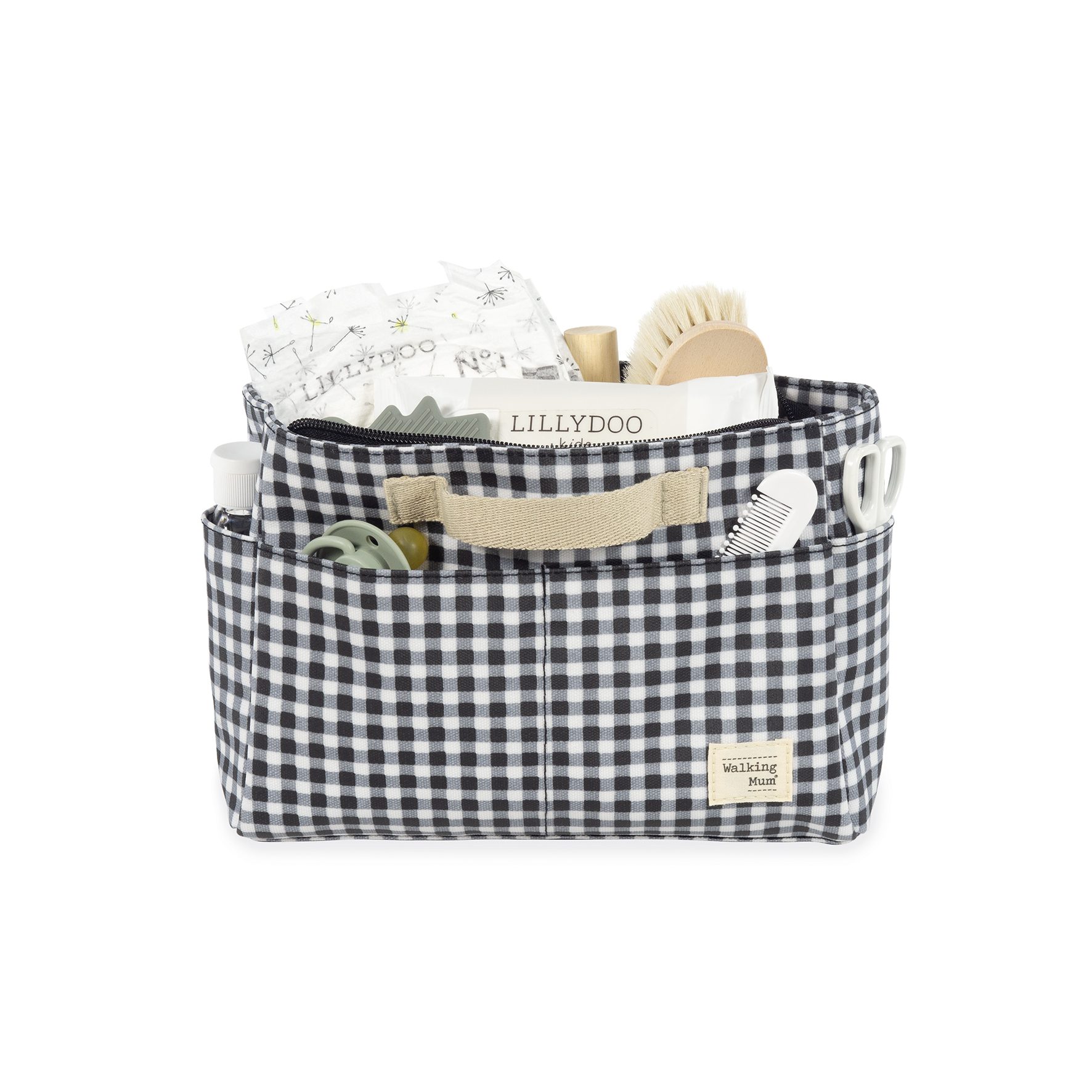 El neceser de bebé I love Vichy en negro es un bolso especialmente pensado para  llevar todos los productos de aseo de nuestra niña o niño al salir de casa.