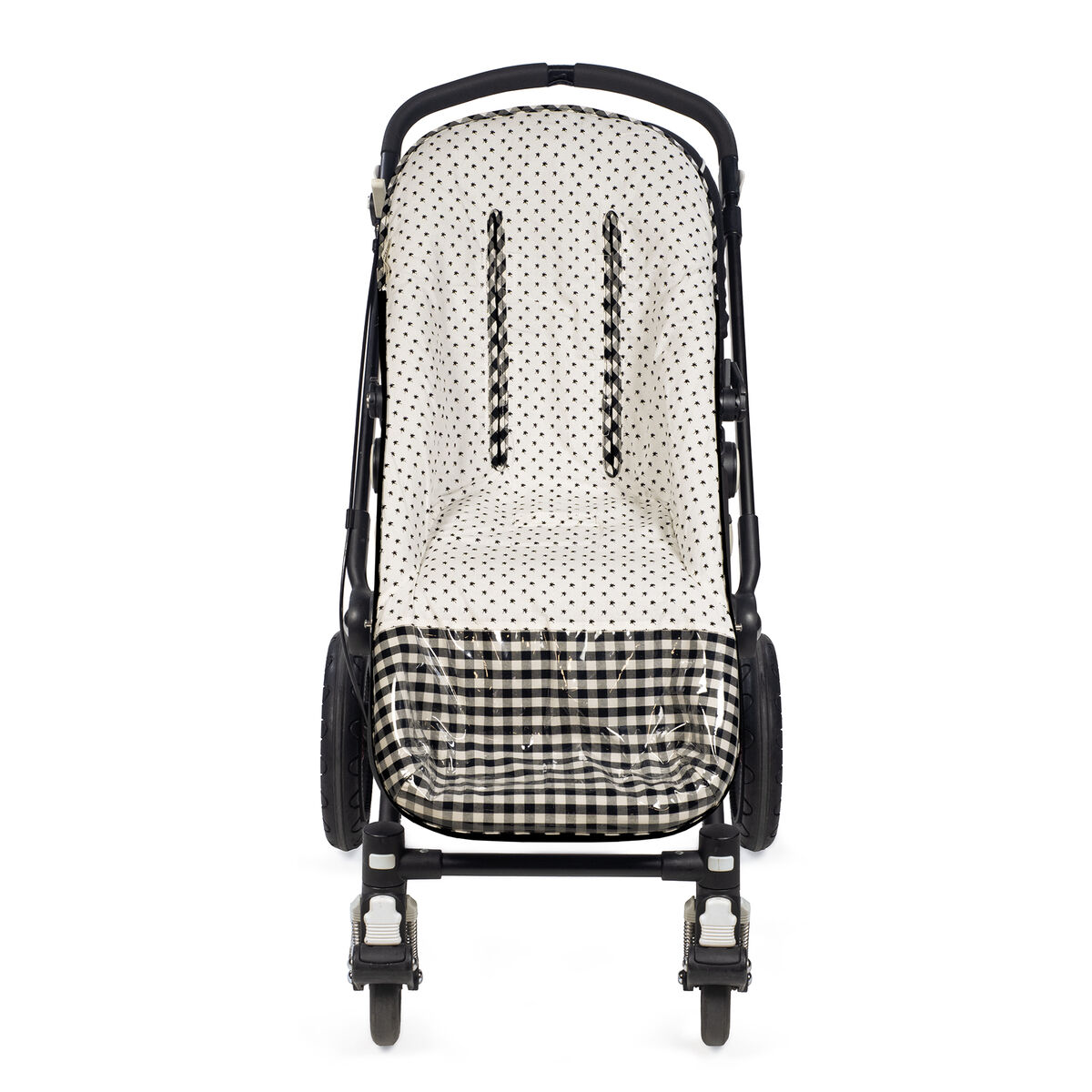 La funda de silla para bebé Remy en cuadro vichy XL negro, es la funda ideal para cubrir la base de la silla de paseo y viene provista de saco para arropar a tu bebé. Con este saco tu bebé estará cómodo durante el paseo. Trasera con material anti-sudoración que evita la sudoración excesiva del bebe. Relleno extraíble. Su esquema dispone de varias aperturas (ojales) y ajustes con los que se te hará más fácil adaptarla a la mayoría de los cochecitos, convirtiendo el paseo de tu bebé seguro y confortable. Está elaborado con un material resistene y cálido. Cuenta con una base plastificada en el reposapiés que facilita la limpieza posterior a su uso. Es un diseño bonito, simple y cómodo que crea un nido para tu bebé manteniéndolo arropado y protegido. El saco se adapta sin problemas a cualquier coche y le permite disfrutar de un descanso más agradable con la forma acogedora que tiene de nido.Gran calidad y mucho estilo. Fabricado en materiales resistentes y de fácil limpieza a mano o a máquina a 30 °C. Walking Mum protege a tu bebé utilizando los mejores tejidos, libres de colorantes azoicos y sustancias nocivas para la salud. Nuestra colección Walking Mum está diseñada con un particular sello de estilo urbano y moderno que no pasa desapercibido, para vestir diferente los paseos con tu bebé. Los accesorios de esta línea son más sport y prácticas, especialmente pensadas en mamás y papás modernos que aprecian los diseños más actuales y en tendencia sin dejar de lado la calidad y la funcionalidad de complemetos que hacen más cómodos todos los paseos con sus bebés.