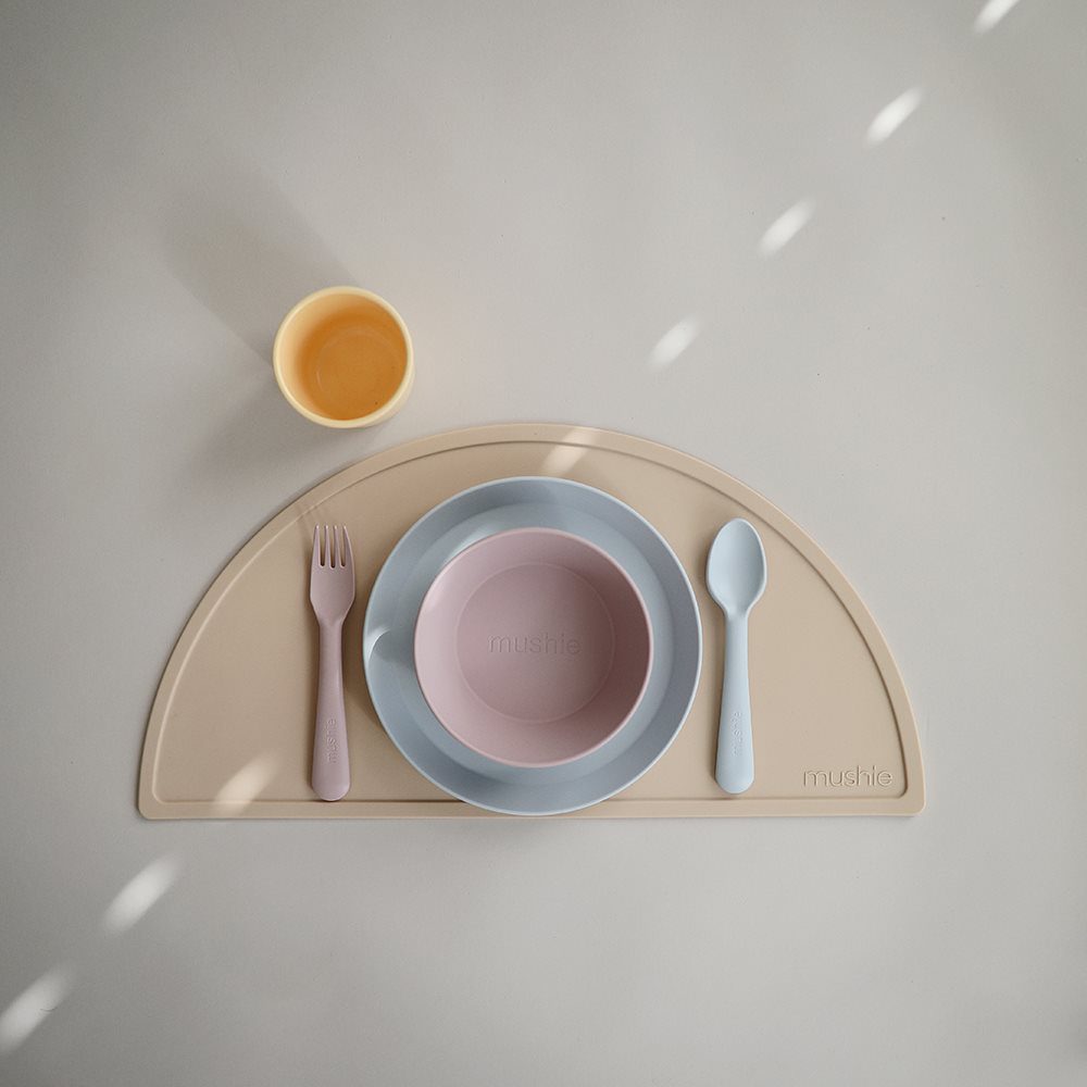 Combine los platos con otros productos de vajilla en colores a juego de Mushie.