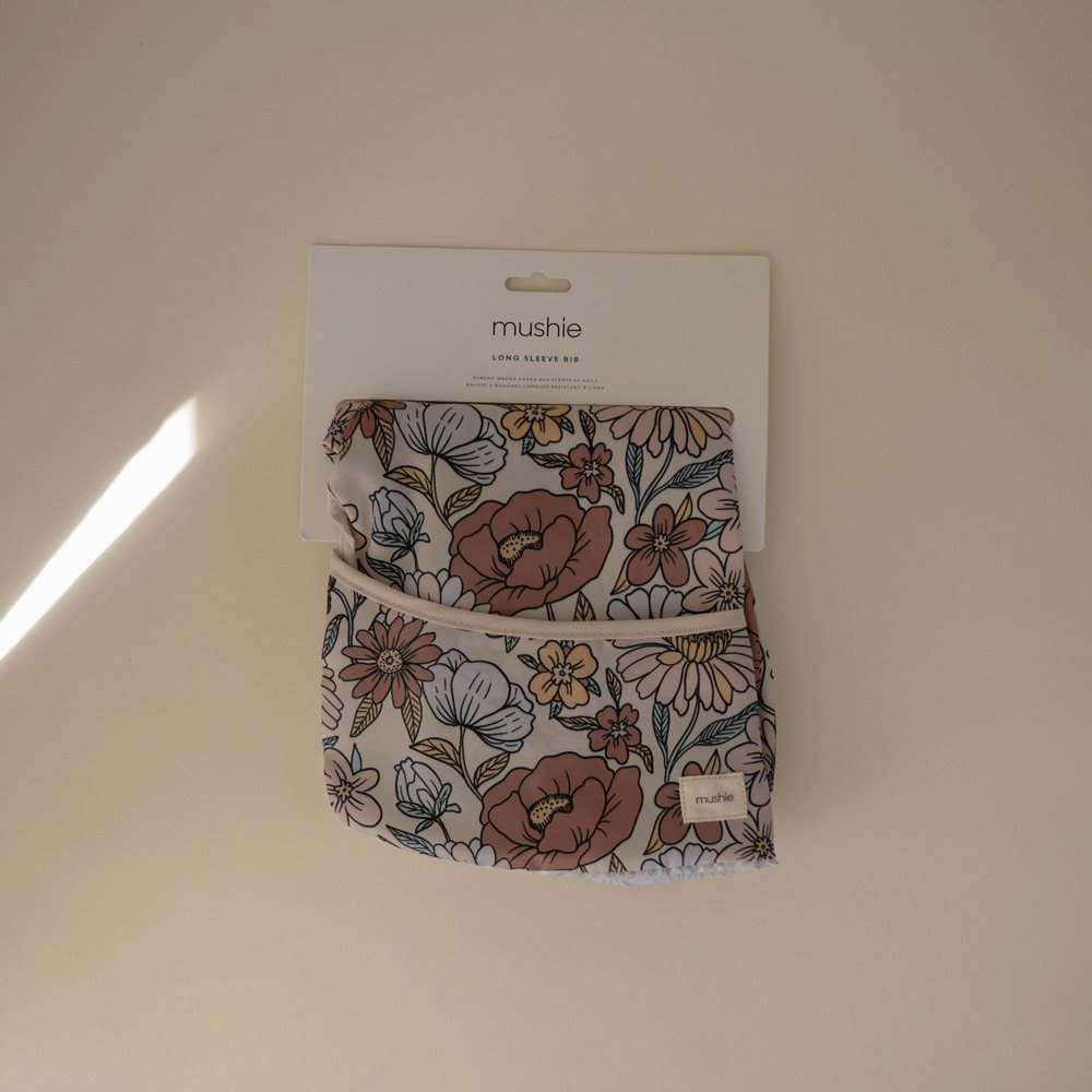 ¡Babero de manga larga de Mushie para una comida sin líos!