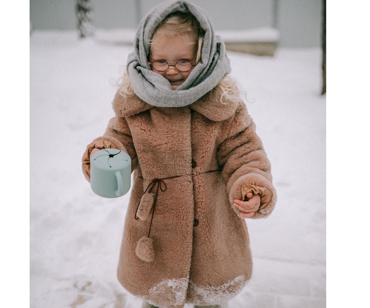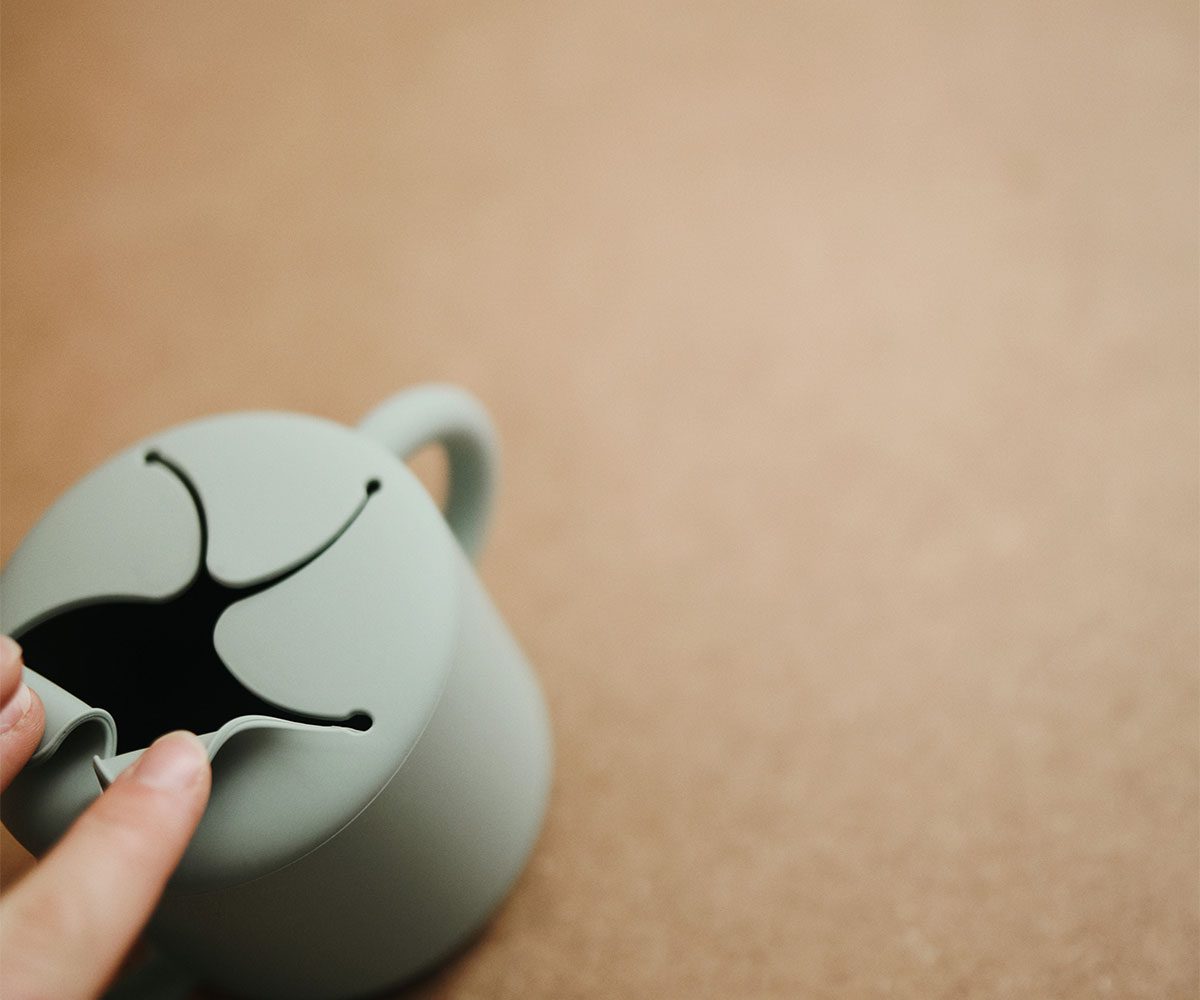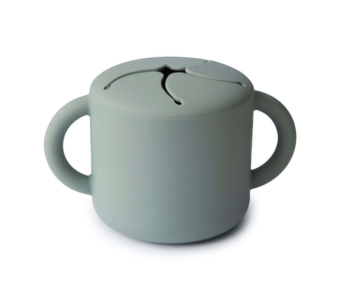 Taza de silicona de Mushie para pequeños snacks es a prueba de derrames.