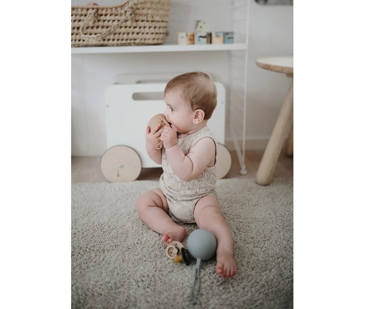 Comprometida con la durabilidad de sus productos, Mushie busca siempre materiales sostenibles y ecológicos para fabricar artículos a un precio asequible. Y es por eso que han optado por utilizar, por ejemplo, silicona de grado alimentario de gran calidad en sus chupetes y portachupetes, o polipropileno como plástico ecológico.