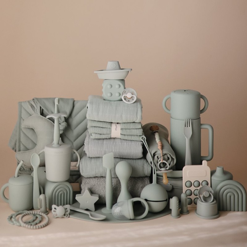 Mushie es una joven marca estadounidense centrada en ofrecer productos asequibles, duraderos y ecológicos, con un diseño minimalista que gusta tanto a madres como a bebés. Esta marca apuesta por un estilo sencillo y elegante, de colores discretos, de manera que nunca pasan de moda. Así, gracias a su resistencia, tu bebé podrá utilizarlo durante muchos años e, incluso, aguantar para que lo herede un hermanito. Podrás encontrar toda una gama de colores de baberos de silicona, que cuentan con un bolsillo recogemigas profundo, perfecto para atrapar trozos de alimentos y mantener a tu hijo y los alrededores limpios. Su cierre al cuello es ajustable y con un sistema cómodo y eficaz para que no se suelte. Los sujetachupetes están hechos con cuentas de silicona, a veces combinada con madera, y son de inspiración vintage, lo que les da un estilo bonito y único. Tanto para comer en casa como para llevarlos de excursión, los platos de Mushie van genial por su resistencia y ergonomía. Podrás elegir entre platos redondos o cuadrados y de diferentes profundidades según haga falta. ¡Los papás también pueden usarlos! También podrás encontrar juguetes Mushie que siguen la misma línea de sofisticación y elegancia, como los vasitos apilables con los que los niños se pasan horas jugando con ellos para construir torres de distintos tamaños y aprender colores, mejorando además la coordinación ojo-mano. No lo dudes, si en casa gustáis de un estilo sencillo y práctico, Mushie es una apuesta segura. La misión de Mushie: Comprometida con la durabilidad de sus productos, Mushie busca siempre materiales sostenibles y ecológicos para fabricar artículos a un precio asequible. Y es por eso que han optado por utilizar, por ejemplo, silicona de grado alimentario de gran calidad en sus chupetes y portachupetes, o polipropileno como plástico ecológico. Por supuesto, tanto la silicona como el polipropileno están libres de BPA, ftalatos y cualquier otra sustancia nociva para la salud, garantizando que son perfectos para que los utilicen los más pequeños. Si compartes esta visión, Mushie no te decepcionará.