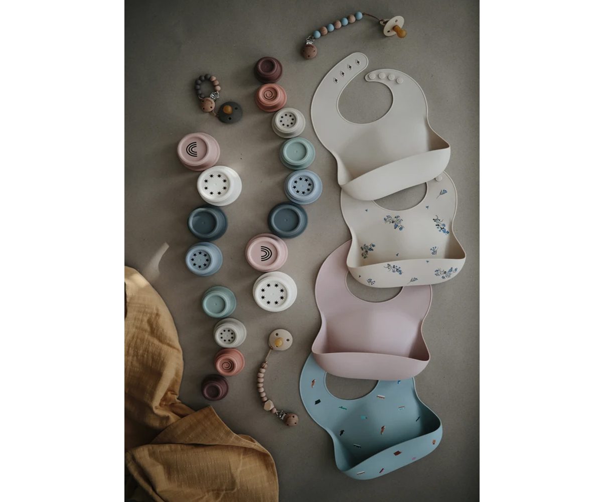 Comprometida con la durabilidad de sus productos, Mushie busca siempre materiales sostenibles y ecológicos para fabricar artículos a un precio asequible. Y es por eso que han optado por utilizar, por ejemplo, silicona de grado alimentario de gran calidad en sus chupetes y portachupetes, o polipropileno como plástico ecológico.
