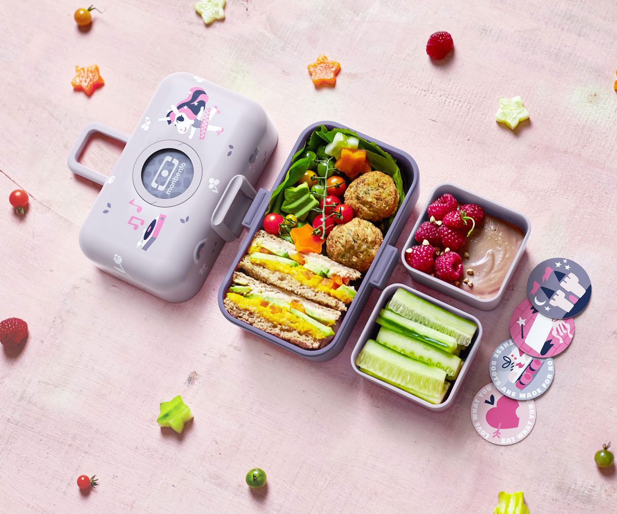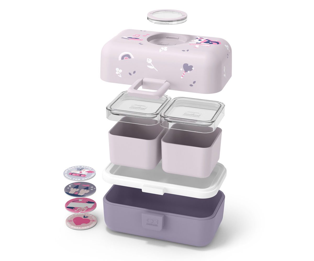 Gracias a sus varios compartimentos, la fiambrera unicornio MB Tresor violeta Unicorn protegerá el almuerzo de los mini aventureros en la escuela o como de vacación. ¡Sus cápsulas intercambiables hacen que la lonchera para niños sea personalizable!