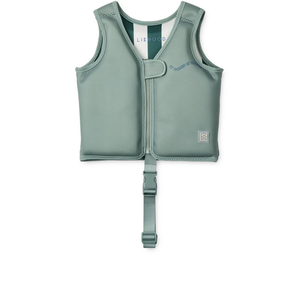 El chaleco de natación Dove con el diseño de la colección Dinosaurs/Mist está hecho de neopreno ligero y flexible, con un tacto suave y sin mucho volumen para proporcionar movilidad. Una ayuda perfecta para flotar y permitir divertirse en la piscina o en el mar.