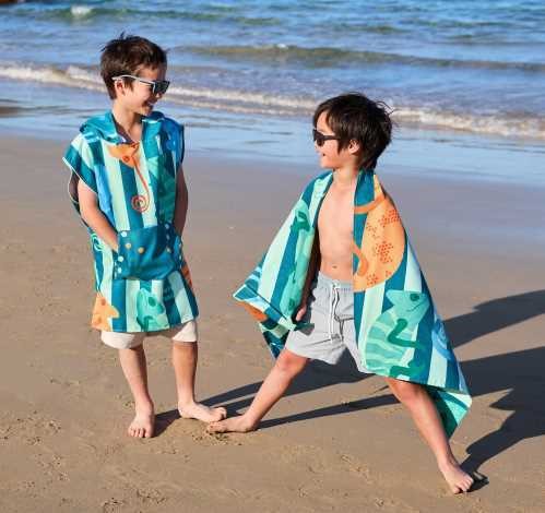 ¡El poncho para niños de secado rápido! Este poncho es ideal para los más aventureros y, se puede personalizar por la parte de atrás del poncho, a media altura con el nombre de tu peque