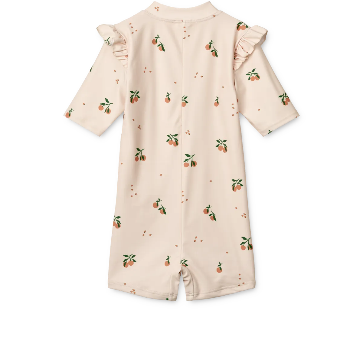 Mono de baño con protección UV40+ y estampados veraniegos. Fabricado en poliéster con certificación GRS y elastano. Con tejido elástico y de secado rápido. Tiene un detalle de volante decorativo en los hombros. Las mangas y piernas cortas y la cremallera frontal hacen que sea fácil de poner.