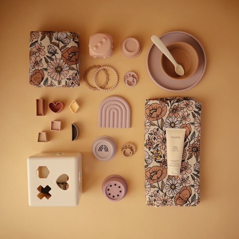 Mushie es una joven marca estadounidense centrada en ofrecer productos asequibles, duraderos y ecológicos, con un diseño minimalista que gusta tanto a madres como a bebés.
