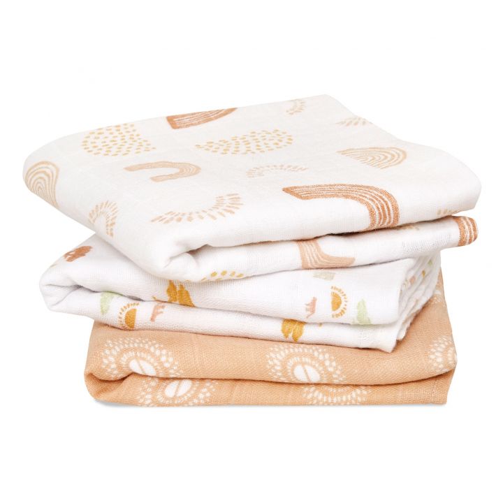 Pack de 3 gasitas de Muselina de algodón 100% orgánico de 70 x 70 cm. Un tamaño muy práctico totalmente «multiusos». Son suaves, absorbentes y transpirables, versátiles y duraderas. Estas gasitas cuadradas son imprescindibles en cualquier situación y en cualquier lugar.